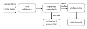 - Anaerobic Baffled Reactor, Anaerobic filter, Constructed wetland, Incineration, Infiltration, Settling-thickening tank, Stabilization ponds, Unplanted drying beds, Vermi-composting